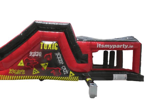 This eye catching Obstacle Course measuring approx 30ft long is ideal for most size gardens. Race through the obstacles, up the steps and down the large slide at the end. Featuring the toxic red, yellow and black artwork this obstacle course is great for all ages including pre teens and suitable for boys and girls.