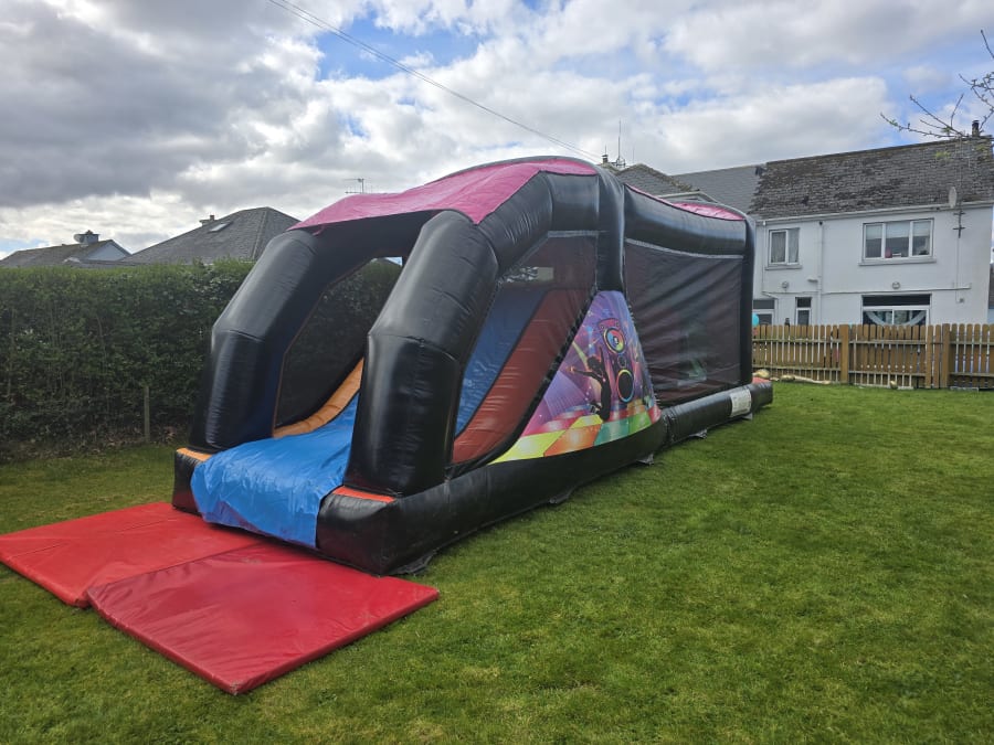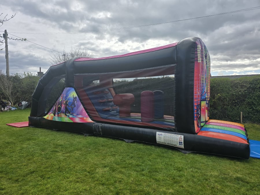 We have combined two of our most popular bouncy castles: Disco Dome and Obstacle Course to bring you the Disco Fun Run. This obstacle course has the traditional obstacles and a large slide with the added bonus of music and lights to create the ultimate party. This is a high energy bouncy castle that is ideal for boys and girls.