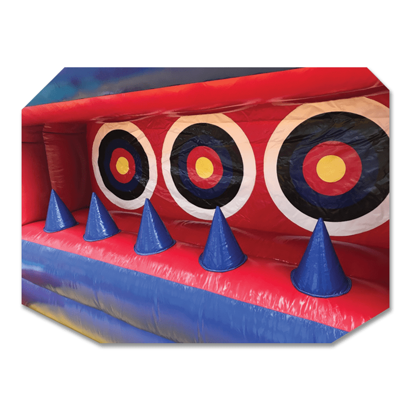 We are delighted to bring you another one of kind brand new inflatable game to Kerry with the inflatable nerf shootout range. This game consists of five floating targets, just shoot the floating targets to win. Suitable as an indoor or outdoor game and can be booked as part of a games package or with a bouncy castle. This is a great addition to any birthday party, corporate event, staff party or christening. To book as part of a tailored package for your event call us on 086 2400591 or contact us through our website.
